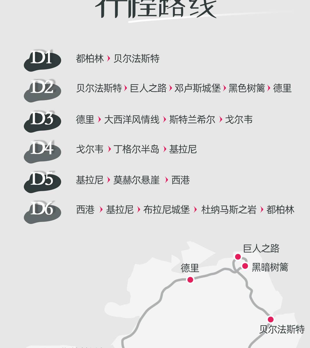 第2天:贝尔法斯特 - 巨人堤道 - Dunluce Castle - Dark Hedges - 德里