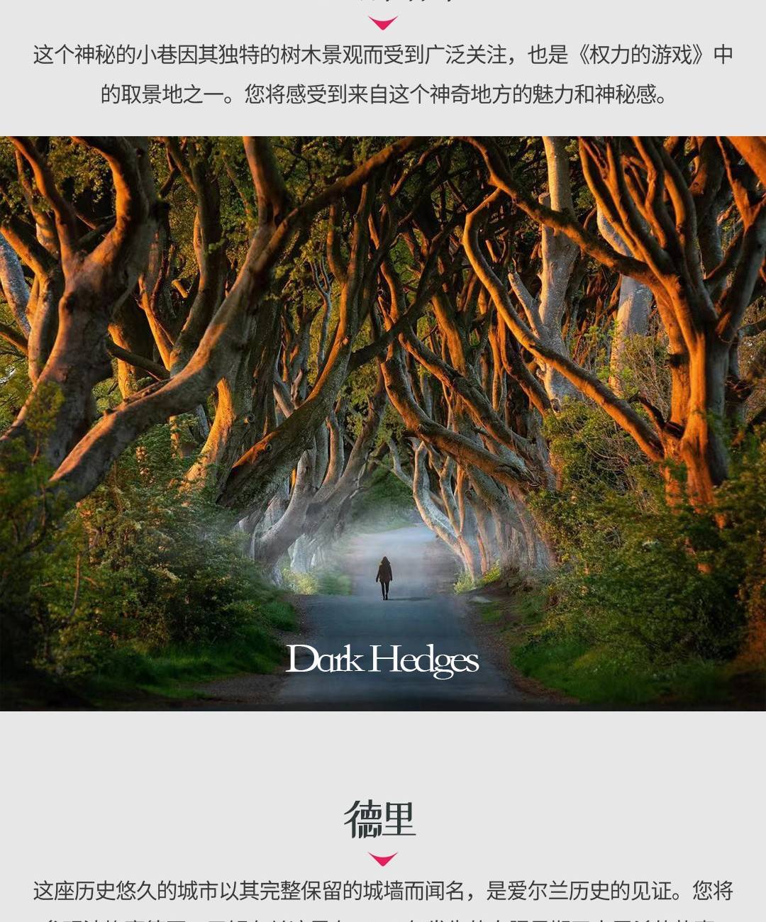 今天是美好的北海岸游览日。我们首先访问由《权力的游戏》而闻名的Dark Hedges。